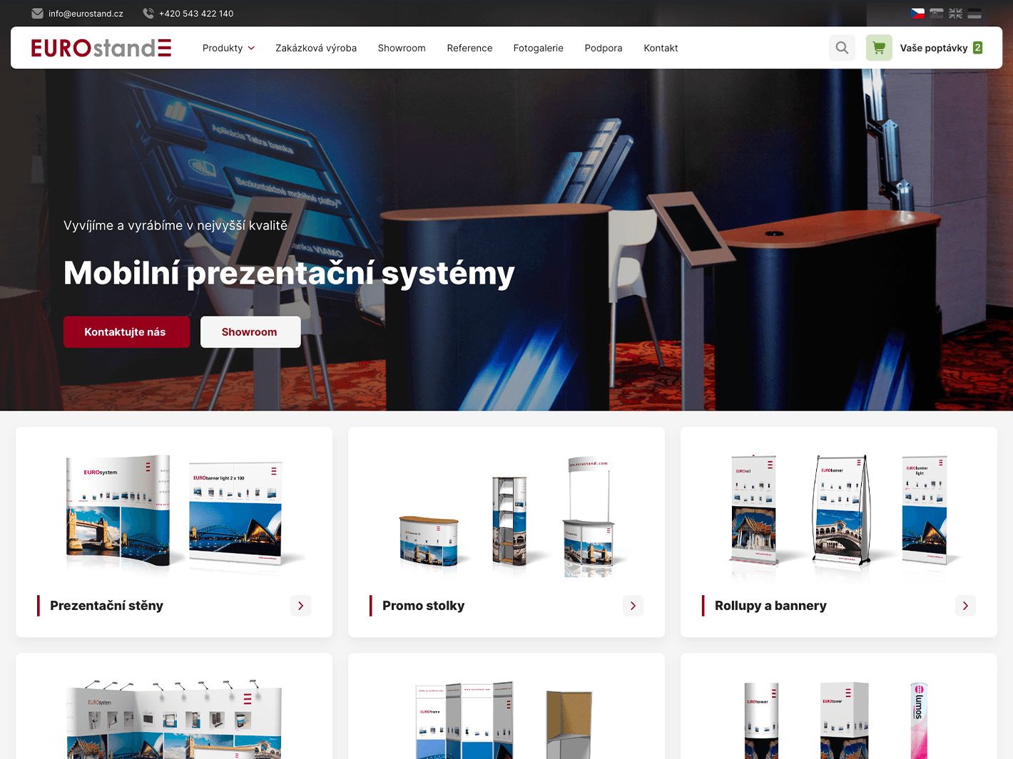 Web pro výrobce přenosných prezentačních systémů Eurostand. Cílem bylo vytvořit moderní a přehlednou prezentaci, která usnadní orientaci v nabídce a podpoří obchodní poptávky.