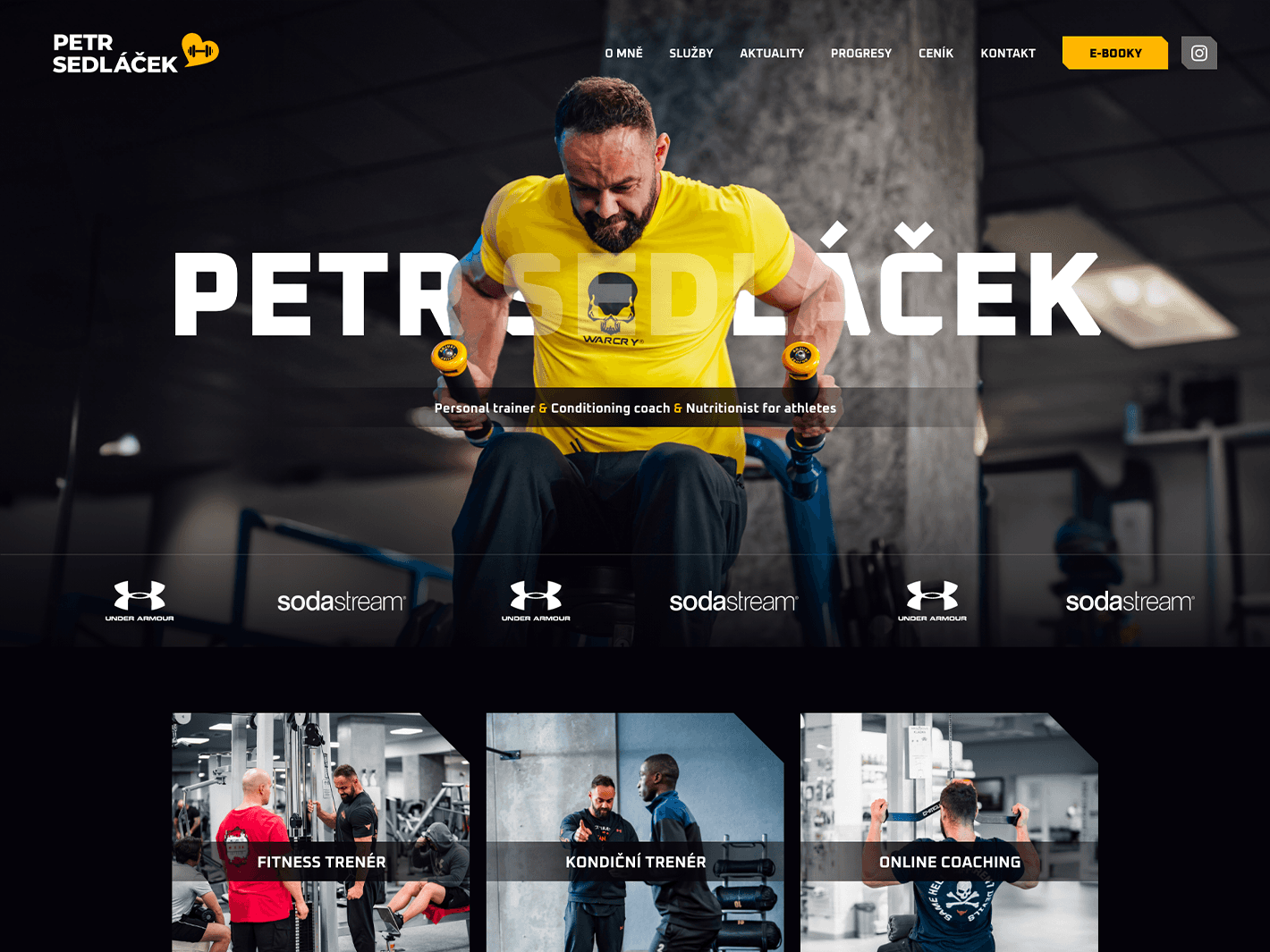Petr působí v několika oblastech – kondiční trénink, fitness trénink a online coaching. Návrh webu proto řeší: